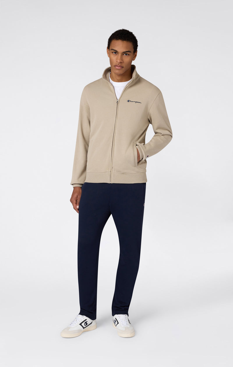 Leichter Herren-Trainingsanzug mit schlichtem und funktionalem Design, ideal für den Alltag und die Freizeit. Gefertigt aus leichtem Basic Terry bietet er angenehmen Tragekomfort ohne aufzutragen und eignet sich perfekt für die Übergangszeit. Das Sweatshirt mit durchgehendem Reißverschluss sorgt für einfaches An- und Ausziehen sowie individuell anpassbaren Komfort, während die passende Hose den Look sportlich und clean abrundet. Das Champion Logo verleiht dem Outfit einen ikonischen Heritage-Touch.