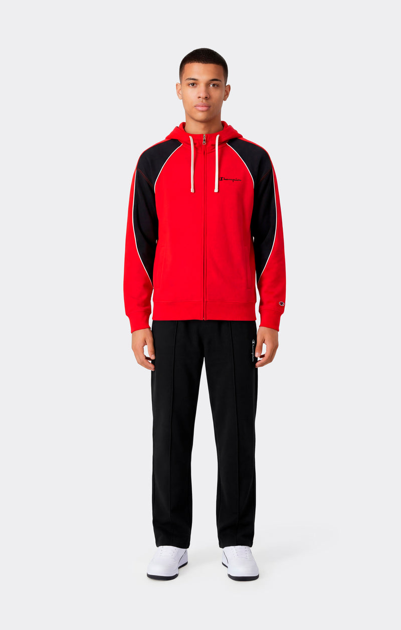 Herren-Trainingsanzug im schlichten, vielseitigen Sportswear-Stil, ideal für den Alltag und die Freizeit. Das Set besteht aus einem Hoodie mit Kapuze und durchgehendem Reißverschluss sowie einer passenden Hose aus leichtem Basic-Terry-Material in Baumwollmischung. Die nicht angeraute Innenseite sorgt für angenehme Atmungsaktivität, während die Standard-Passform Komfort und Bewegungsfreiheit bietet. Abgerundet durch ikonische Champion-Details.