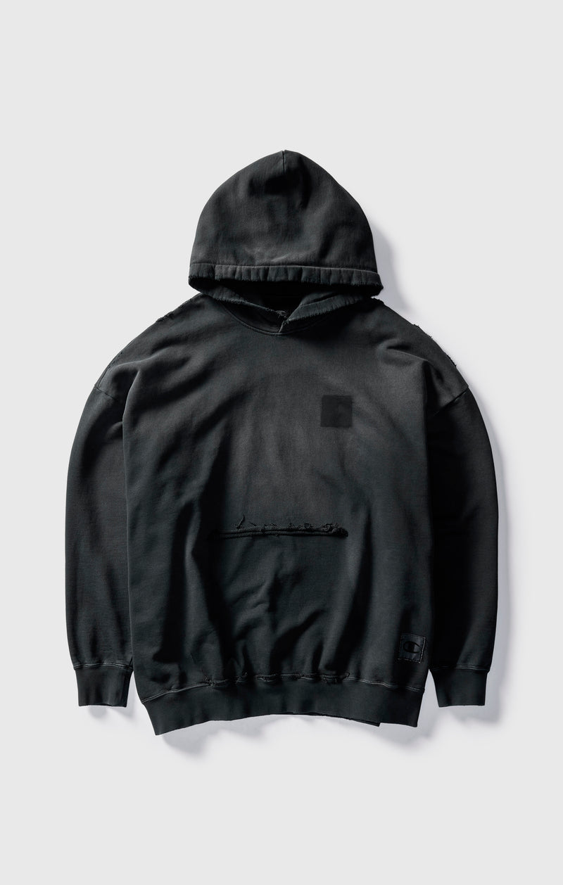 This hoodie from the Nowhere University capsule, is a piece that blends comfort with experimentation. Made from heavyweight cotton, it features a loose fit that ensures freedom of movement and a relaxed look. Raw-cut details and a deliberately imperfect aesthetic express the idea of a garment in constant evolution, becoming a personal statement for those who wear it. Designed for everyday use but also as a style declaration, this hoodie merges functionality with creative research. Each hoodie is individually numbered, with the production number printed inside as a mark of exclusivity, 100% Made in Italy.