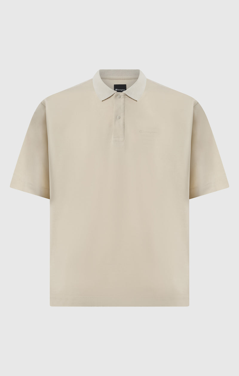 Made from a blend of plant-based recycled Sorona® fiber, derived from corn sugars, and polyester, this polo shirt is designed with consideration for environmental impact. The fabric has a smooth hand feel and provides stretch, shape retention, wrinkle resistance, quick-drying properties, and resistance to pilling, making it suitable for repeated wear. It also offers UV protection, allowing for use across different seasons and environments. The polo is designed in a relaxed fit with added room through the body and shoulders, and features a slightly longer back hem. The unisex sizing allows it to be worn either true to size or oversized, depending on styling preference. Its simple construction makes it suitable for both single wear and layering as an inner piece. A tonal matte rubber Champion® logo is printed on the left chest, and a transfer-printed Champion® label is applied on the interior. These details reflect the minimal design approach of the CHAMPION BLACK EDITION.