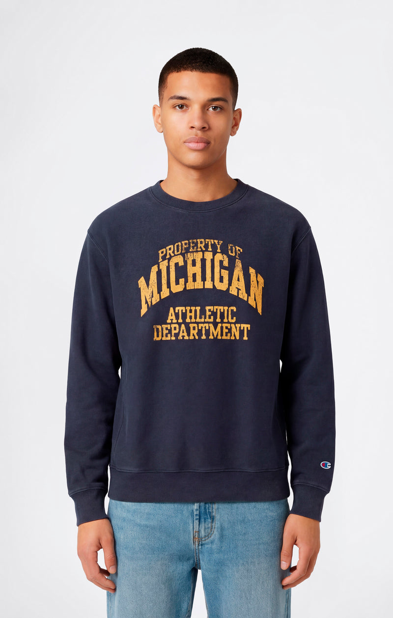 Sudadera Hombre Reverse Weave de Cuello Redondo con Interior Afelpado y Estampado Azul oscuro