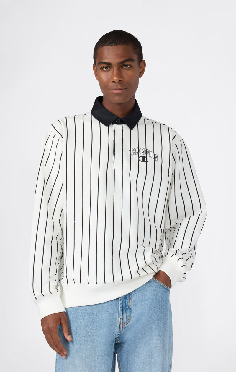 Unisce spirito sportivo e gusto retrò questa polo a righe in jersey pesante da 280 g/m². Il colletto a contrasto e il logo tono su tono ricamato richiamano le uniformi universitarie, in una chiave street aggiornata.