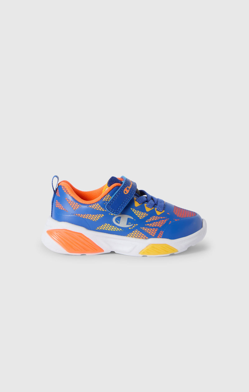 Energia e colore per i più piccoli con le sneakers Wave Tri. La tomaia in mesh è arricchita da rinforzi termosaldati che ne migliorano il supporto e la durata, mantenendo il piede leggero e fresco. L’intersuola con luci integrate accende ogni passo per un tocco di divertimento in più, perfette per accompagnare il gioco con comfort e stile.