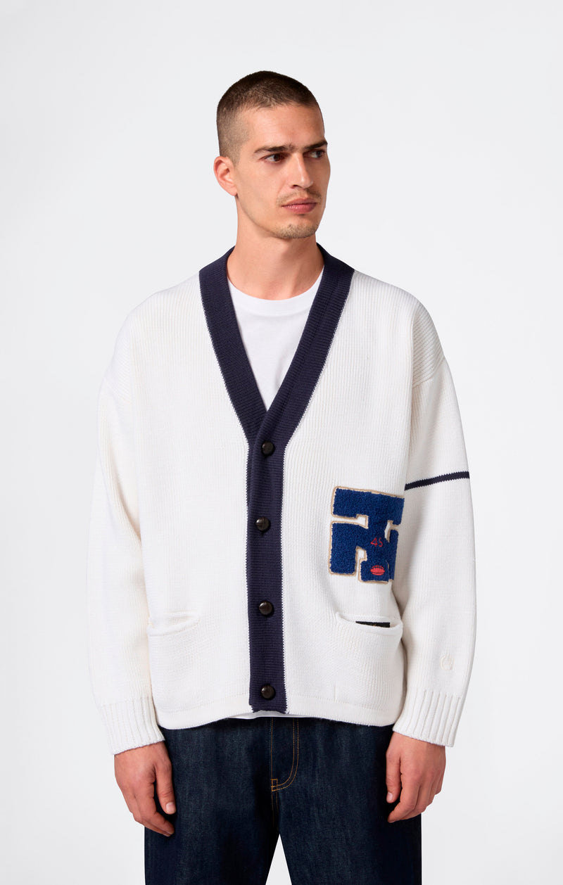 V-neck cardigan with button closure that recalls classic American varsity style, reinterpreted with a contemporary touch. Made from a Merino wool and acrylic blend, it’s warm yet lightweight—ideal for layering. Finished with front pockets and contrast details, it’s part of the Index & Archives Lighthouse project, which reimagines Champion’s heritage through updated archival pieces.