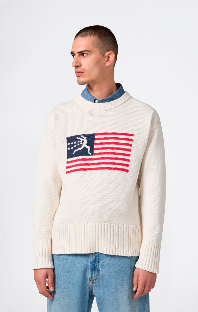 Inspired by classic American college style, this crewneck sweater combines compact knit construction with a bold, sporty graphic look. Made from a cotton-acrylic blend yarn, it offers softness and comfort while maintaining good structure. The Custom Fit is designed to balance clean lines with a modern silhouette. Part of the Index & Archives Lighthouse selection, the capsule that reinterprets college heritage with a contemporary twist.